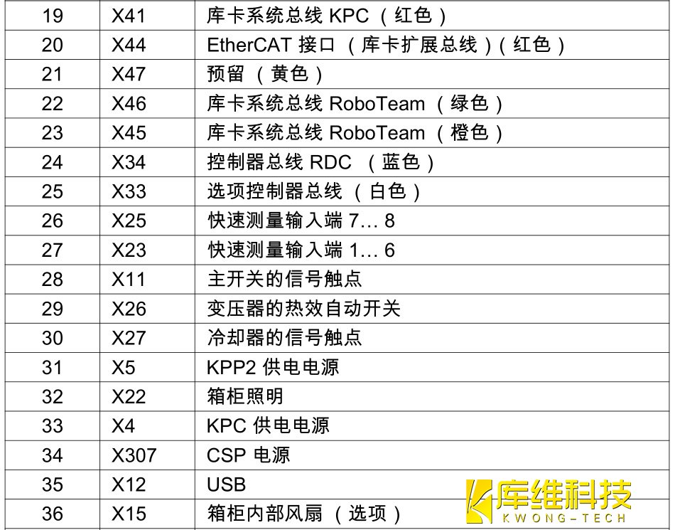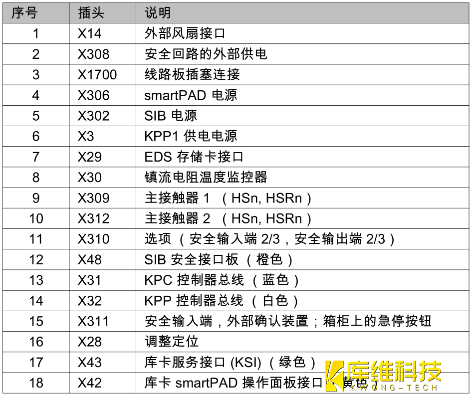 控制柜 (CCU)包含兩塊電路板 (CIB 控制柜接口板和 PMB 電源管理板),是機器人控制系統(tǒng)所有組件的配電裝置和通訊接口. 所有數(shù)據(jù)通過內部通訊傳輸給控制系統(tǒng),并在那里繼續(xù)處理. 當電源斷電時,
